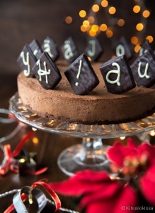 After Eight -konvehdit ovat yksi klassisimpia joulusuklaita. Eipä meilläkään pukki jättänyt koskaan tuomatta tiettyä tutun muotoista pakettia. Sitä kautta minttusuklaa on minulle yksi joulun mauista. Ohuet konvehdit ovat erinomaisia myös kakun koristelussa joko sellaisinaan tai kuten tässä – valkosuklaalla tuunattuna. Täytteen sisältämä suklaa takaa sen, että täyte pysyy muodossaan ilman liivatetta.