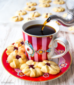 Kokeilin erilaisia tylloja ja kukkatylla oli ehdottomasti paras. Pursotusjälki säilyi kauneimpana juuri tällaisissa kukan mallisissa pikkuleivissä. Kukkatylla jättää luonnostaan keskelle kolon marmeladia varten. Toki tähtityllallakin saa tehtyä nättejä pursotuksia. Tähtitylla soveltuu paremmin, jos haluat pursottaa tankoja tai rinkuloita, mutta niihin pursotusjälki ei jää paistettaessa yhtä hyvin näkyviin.