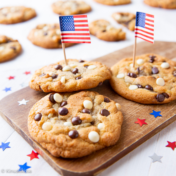 Tyypillisen cookie-ohjeen hiput ovat tummaa tai maitosuklaata tai näiden yhdistelmiä. Itse preferoin tummaa suklaata yhdistettynä valko- tai maitosuklaahippuihin. Klikkaamalla chocolate chip cookies -avainsanaa saat esiin lukemattomat muut versiot, joita olen tästä klassikosta kehitellyt.
