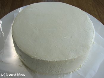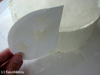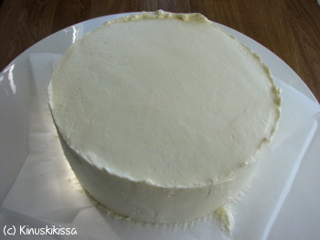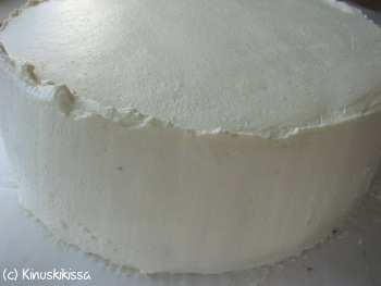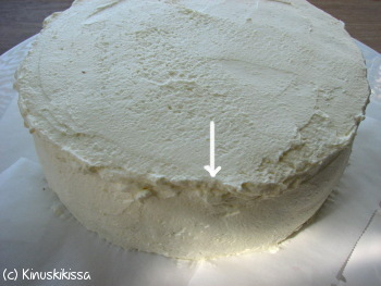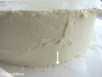 Samoin kakun alareunassa (tarjoilulautasta vasten) on syytä olla kermaa riittävästi. Kermapinnan on jo tässä vaiheessa hyvä olla melko tasainen.