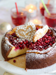 Harva voi vastustaa uunissa pehmeäksi paistunutta juustokakkua. Tässä versiossa täytettä maustaa appelsiini. Puolukat ja piparkakut vievät makumaailman jouluun. Kakun voi ja se kannattaakin valmistaa edellisenä päivänä, mikä tuo helpotusta juhlapäivän aikatauluun. Pöytäänpääsyn odottelu vain parantaa makua ja rakennekin ehtii yön aikana asettua. Piparitalkoiden kauneimmat yksilöt kannattaa laittaa syrjään ja käyttää joulukakun koristeina.