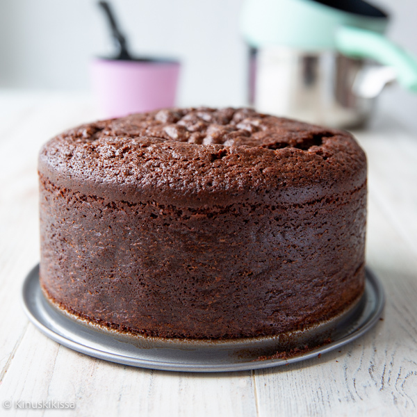 Tämä kakkupohja on syksyn monissa kakkuleivonnoissa noussut suoraan ykköspaikalle. Uskomaton mehevyys, helppo käsiteltävyys ja browniemainen suklaisuus. Taikina kohoaa tasaisesti ja taipuu niin erikoiskorkeisiin kuin vaativiin käännettyihin kakkuihin.