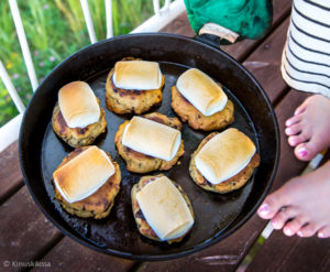 Heinäkuun helteillä meidän kesämökin grilli oli kovassa käytössä. Perinteisten grilliherkkujen lisäksi halusin kokeilla, voisiko grillissä valmistaa myös makeaa syötävää. Nämä cookiet valmistuvat kaasugrillissä, jossa lämpötila on tasainen. Keksit paistetaan pannukakkutyyliin valurautaisella paistinpannulla molemmilta puolilta rapeiksi. Haluttaessa viimeistely voidaan hoitaa vaahtokarkeilla. Aidon amerikkalaisen chocolate chip cookien kuuluu olla pehmeä sisältä ja rapea pinnasta. Tämä ”peruslainalaisuus” pätee tässä grillissäkin valmistetussa versiossa.