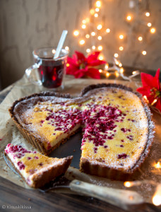 Tämän piirakkareseptin leipomiseen minua innosti uunissa kypsennettävä amerikkalainen juustokakku. Idea keksipohjasta ja makeasta tuorejuustotäytteestä toimii ihanasti myös piirakkamuodossa. Jouluisen säväyksen tähän antaa piparkakuista tehty pohja. Puolukat raikastavat täytettä.