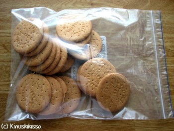 Laita keksit 2 litran vetoiseen minigrip-pussiin tai vastaavaan pakastuspussiin. Työnnä pussista ilmat pois sulkemisen yhteydessä.
