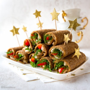 Hapankorpuista ja katkarapusalaatista saa herkullisia sormisyötäviä helpolla vaivalla. Rukiinen kuori antaa makua ja takaa sopivan jämäkän rakenteen. Sitruunavesi pehmittää korput niin, että rullaaminen onnistuu vaivatta. Mehevässä täytteessä yhdistyy kermainen täyteläisyys ja kasvisten tuoreus. Näin saat makoisaa tarjottavaa pikkujouluihin, illanistujaisiin tai muihin juhliin.