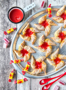Bongasin kaupasta valmiita Kettukarkki-joulutorttuja ja siitähän tuli tietenkin inspiraatio valmistaa tällaisia itse. Kettukarkki itsessään ei toimi täytteenä, sillä kuumennettaessa se sulaa hailakan väriseksi sokeriliemeksi. Onneksi minulta löytyi takataskusta Kettukarkki-leivosten yhteydessä kehittämäni marmeladiohje, jossa karkkeja täydennetään omenalla. Se toimi hyvin myös tortuissa, onhan marmeladin joulunpunainen väri varsin hyvin ajankohtaan sopiva.