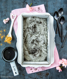 Lakritsijäätelö syntyy 10 minuutissa (+ pakastus) muutamista raaka-aineista. Tämä kylmä herkku onnistuu myös vegaanisena ja gluteenittomana. Lakritsijäätelölle sen luonteen antavat raakalakritsijauhe (maku) ja musta tahini (väri). Kumpaakin löydät hyvin varustetuista ruokakaupoista. Tahini on tehty mustista seesaminsiemenistä ja siinä on hieman paahteinen, pähkinäinen maku. Se värjää tehokkaasti ja luonnollisesti ja antaa jäätelölle lakritsin makua mukailevan sävyn.