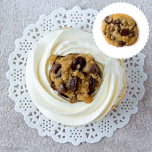 Kukapa ei rakastaisi raakaa keksitaikinaa? Nyt sitä saa nauttia myös laskiaispullassa! Tee taikina suoraan chocolate chip cookie -ohjeella (puolikas annoskin riittää jo pitkälle) tai jos haluat välttää raakaa kananmunaa ja varmistaa taikinan vatsasystävällisyyden, voit tekaista syötävän keksitaikinan. |