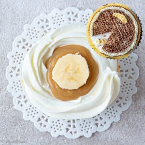 Banaanin ja toffeen yhdistelmä on tuttu banoffee-piirakasta. Toffeen ohjeen löydät ylempää kohdasta kinuski/toffee. Päälle tulevan banaaniviipaleen voi valella sitruunamehulla, mikä estää tummumisen tarjoilun viivästyessä. Viimeistele halutessasi kermavaahdon pinta digestivekeksirouheella. |
