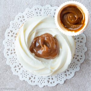 Kinuskitäyte on Kinuskikissan suosikki! Kakunkuorrutekinuskin kaltainen täyteohje löytyy kinuskisten laskiaispullien reseptistä: fifty-fifty kuohukermaa ja fariinisokeria ja keittäminen 110-asteiseksi. Erittäin hyvä vaihtoehto on myös Sticky toffee -tahna (skaalaa reseptiä reilusti pienemmäksi)! Valmista karamellisoitua maitotiivistettä käyttämällä saat hetivalmiin kinuskitäytteen. |