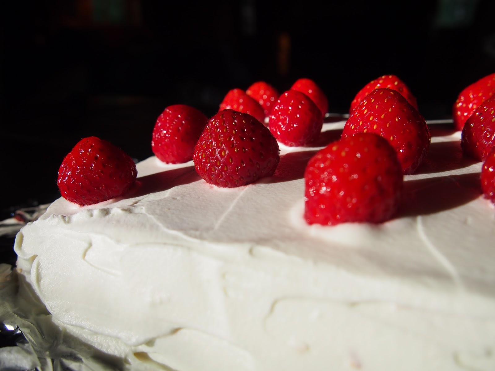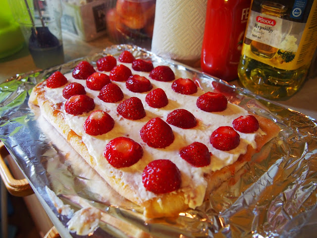 12. Sitten loppu kermavaahto ja mansikat kakun päälle.