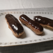 Eclairit vaniljatäytteellä ja mustaherukkakuorrutteella
