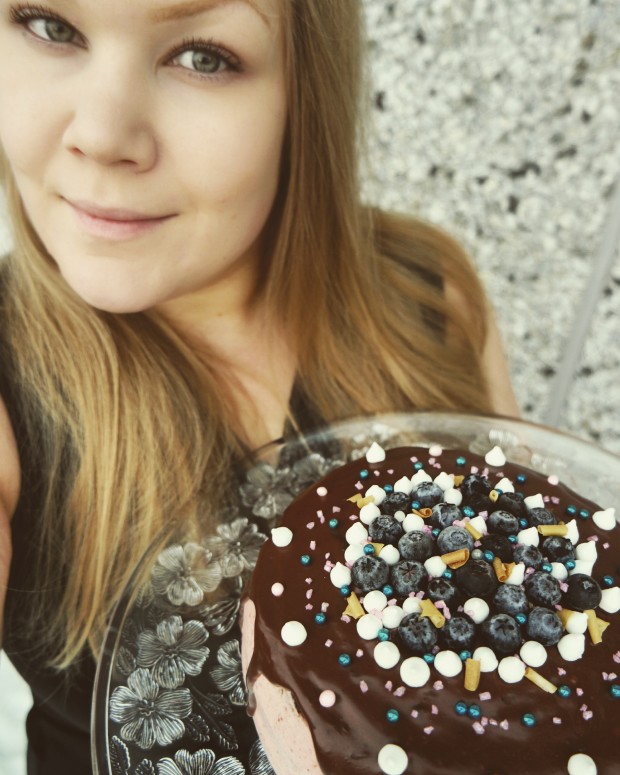 Paista 175-asteisessa uunissa noin 20 minuuttia. Anna jäähtyä,kostuta ja koristele tomusokeri-vesi seoksella ja vadelmamarmeladilla.