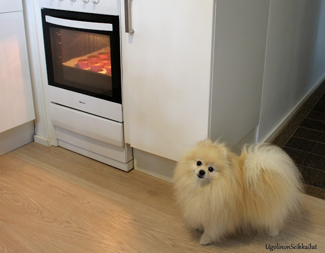 Hihi! Kiitos kiitos! Olut on yllättävän hyvä leivoksissa! Ei maistu lähes ollenkaan ja kuplat auttavat kohoamisessa kunnolla 😀 Ugolino aina vahtii ja haistaa kaikkea. Jos ei tykkää pää kääntyy jos on hyvää niin kieli tulee ulos ja nuollaan viiksiä 😀