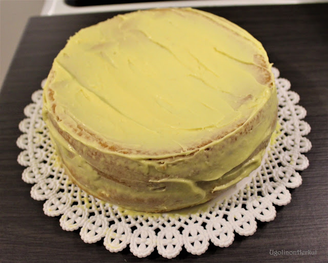 - Kuorruta koko kakku paksulla kreemikerroksella.