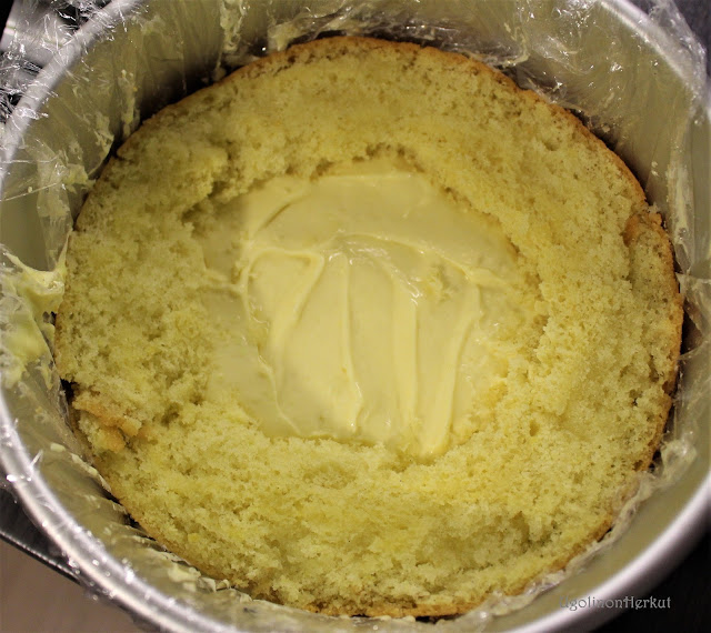 - Kosteuta nyt kakun pohja ja siirrä vuokaan. Paina hieman koko kakkua.