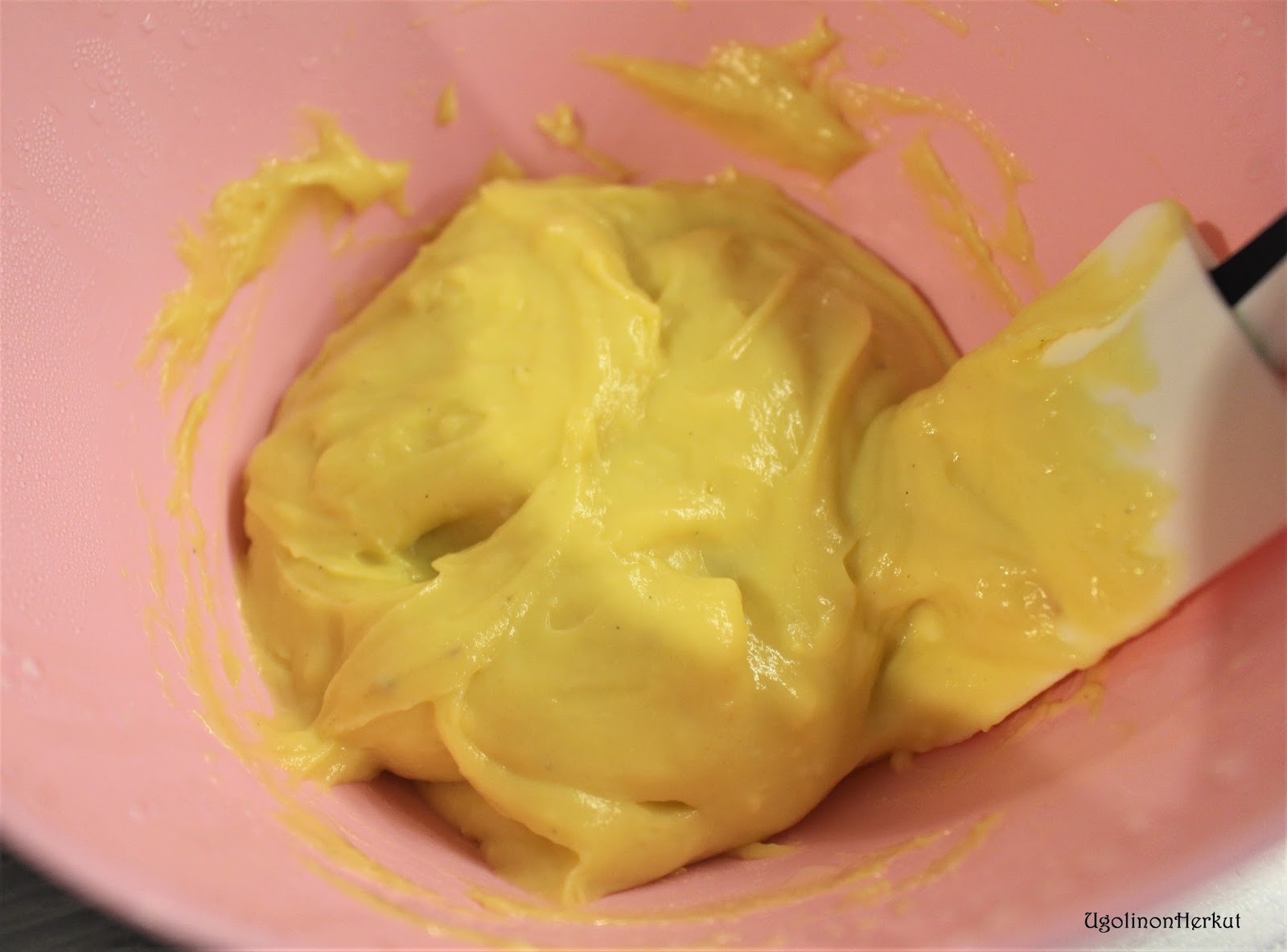 - Vatkaa tasaiseksi vaalean keltaiseksi kreemiksi. (Crema Diplomatica)