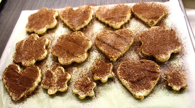 Kun kakku on valmis, leikkaa piparimuotteilla pieniä kakkuja. Kastele muotteja lämpimässä vedessä joka kakun jälkeen.