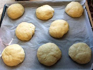 Tee lasin pohjalla jokaisen pullan keskelle kuoppa. Käytä lasi jauhoissa joka pullan jälkeen niin ei jää kiinni pohjaan.