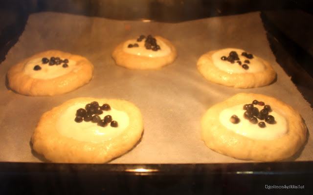 Laita vielä 1 tl mustikoita jokaisen pullaan päälle.