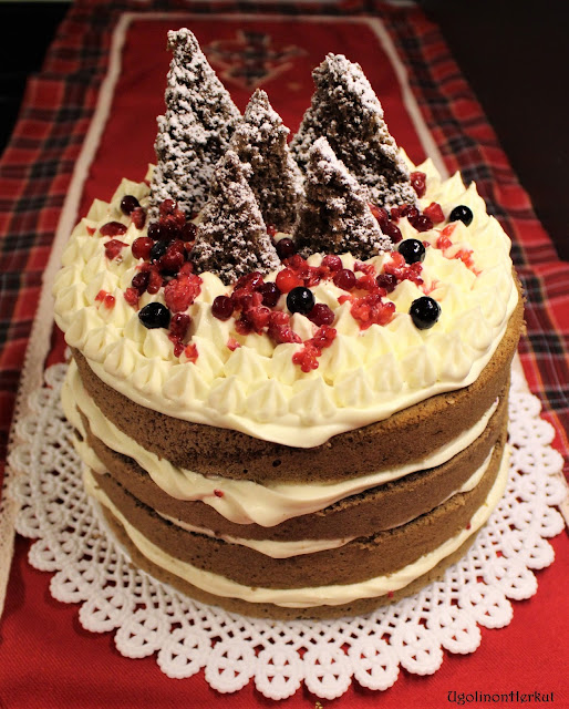 Laita jokaisen kakkukiekon väliin kreemiä ja metsämarjoja. Kasaa korkea kakku jossa kaikki kerrokset.