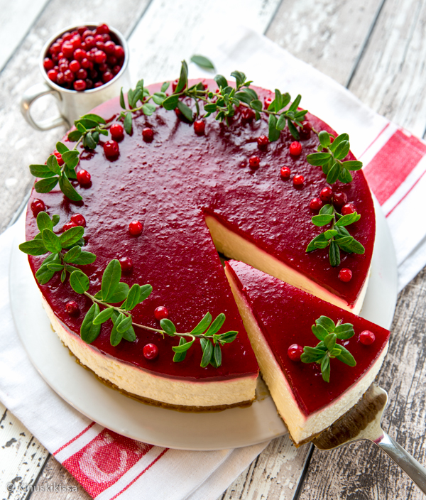 On myös huomioitava, että Agar agar reagoi tiettyjen raaka-aineiden kanssa erilailla ja hyytelöimisteho ja reagointi voi vaihdella. Tätä kakkua tehdessäni huomasin, että puolukkamehusta tehty kiille muuttui sakkamaiseksi. Sen sijaan soseutettu puolukka + vesi toimi hyvin.