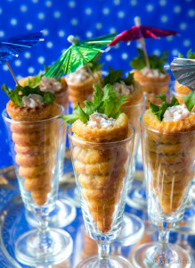 Laita sarvet halutessasi tarjolle kuohuviinilaseihin. Laita jokaiseen sarveen salaatinlehti.