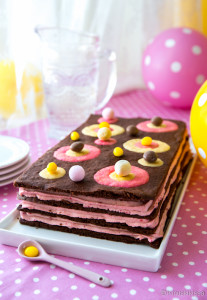 Tässä keksikakussa halusin hyödyntää pursotettavaa täytettä, koska kakun reunoja ei ole tarpeen peittää mitenkään. Pursottamalla täytetty kakku tekee siitä viimeistellyn näköisen. Jos täytettä jää yli, sitä voi hyödyntää myös kakun pinnalla. Esimerkiksi kesällä tuoreen mansikkasadon aikaan näkisin tämän kakun koristelussa taikinakuvioiden tilalla mansikkapursotusta, tuoreita mansikoita ja sitruunamelissan lehtiä. Mansikkakesää odotellessa!