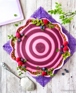 Seepra on pitkästä aikaa täällä – nyt raikkaampana kuin koskaan! Seeprakakuista tuttu tekniikka toimii myös piirakan täytteenä. Marjoja on runsaasti mukana, mikä tekee tästä todella kesäisen makuisen ja värit suorastaan hehkuvat. Piirakka tykkää tekeytyä jääkaapissa yön yli – valmista siis huoletta jo etukäteen.