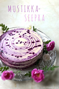 Mustikkaseepra on saanut nimensä seepran raitoja muistuttavasta täytteestä, jossa vuorottelevat mustikan ja kinuskin maut. Toukokuussa julkaistu musta-valkoinen seeprakakku sai heinäkuun alkajaisiksi sisaren ”mansikkaseeprasta” eli kinuski-mansikkakakusta. Nyt salmiakki vaihtui toiseen supisuomalaiseen makuun, mustikkaan. Tämä resepti on muilta osin identtinen mansikkaversion kanssa.
