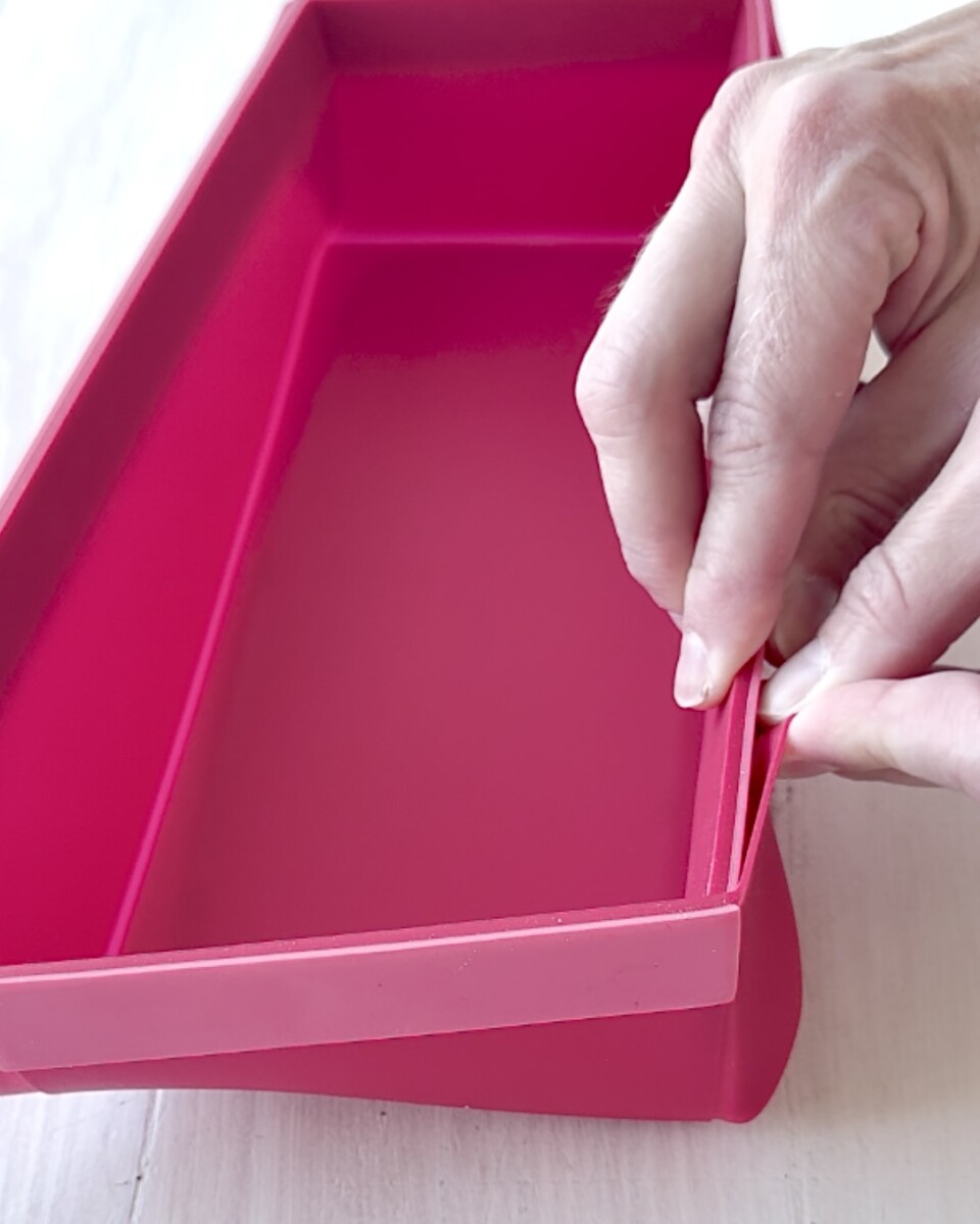 Paistaminen tapahtuu Heirolin silikonisessa leipävuoassa, jossa on tarttumaton pinta. Vuoan erikoisuutena on sen kompakti koko: se taittuu kasaan ennen käyttöä, mutta koottuna on napakka eikä falskaa lainkaan. Vuoassa leivonnainen on helppo säilyttää, kuljettaa tai vaikka pakastaa. Käytön jälkeen vuoka vie säilytyksessä vain vähän tilaa – se litistyy muutaman millin paksuiseksi levyksi.