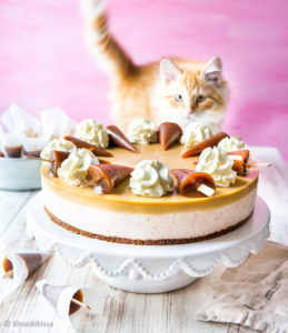Meillä juhlittiin vähän aikaa sitten odotettua perhetapahtumaa, kun pieni siperiankissanpentu Nekku muutti taloon. Nekun saapumisen kunniaksi kahviteltiin ja kakuteltiin. Käytin kakkuun omenan makuista täytettä, jonka soveltamista olette toivoneet hyydykekakuksi. 🍏 🍎 Omenan rinnalle sopii ihanasti toffeemakeisen maku. Kiille maistuu siis nekulta ja koristelussakin vielä nekkuillaan! Kun kissalla on näin makea nimi, saa kakku olla sen veroinen. 🙂