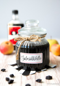 Halusin tehdä omenoista jotain täysin erilaista, MUSTAA hilloa. Ajatus lähti siitä, että kakkuun piti saada salmiakin makua hillomaisesti levittyvässä muodossa. Tämä on hyvä tapa hyödyntää omenoita ja yhdistää niihin uudenlainen makukomponentti.