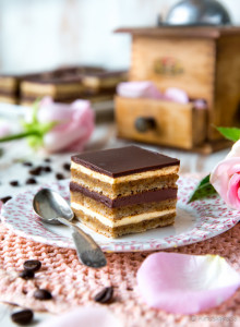 Oopperakakku (Gâteau Opéra) on ranskalaisten lahja herkkusuille. Se kutkuttelee samoja makuhermoja kuin oma juhlava klassikkomme, Ellen Svinhufvudin kakku. Mantelit ja kahvin makuinen kreemi ovat tässäkin kakussa tärkeässä roolissa. Olen muokannut alkuperäistä ohjetta hieman helpottaakseni valmistamista. Vaiheita riittää siitäkin huolimatta, mutta lopputulos on kokemisen arvoinen.