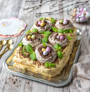 Brita-kakku kulkee suomalaisten juhlissa vuodesta toiseen. Kakkutaikinan ja marengin yhdistelmä on ajaton ja mukautuu erilaisiin sesonkeihin. Kutsuvan keltainen ja hedelmäinen täyte tekee siitä pääsiäisherkun. Linnunpesät kakun koristelussa symboloivat uutta elämää, toivoa ja uskoa tulevaisuuteen. Sitä kaikkea tarvitaan näinä aikoina.