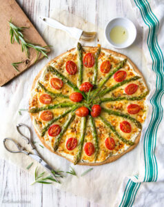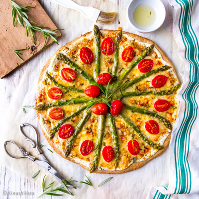 Joko olette tutustuneet pizzakkaan? Nimi kuvaa leivonnaista, joka on puoliksi pizza ja puoliksi piirakka. Ulkonäkö muistuttaa pizzaa, sillä pizzakka paistetaan pellin päällä. Pohjaksi käy loistavasti pakastealtaan taikina. Se kaulitaan ohuenohueksi, jolloin paistotulos on ihanan murea. Päälle kasataan piirakasta tuttuja täytteitä. Tomaattikastikeen tilalla on ranskankerma – myös tuorejuusto käy hyvin. Laadukas juusto on tärkeä maun antaja! Ja päälle kauden kasviksia, joista parsa on näin toukokuussa ehdoton ykkösvalinta.