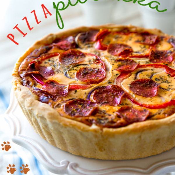 Pizzan suosio pitää pintansa, mutta sellaisenaan se ei ole tyypillinen juhlatarjottava. Piirakan muodossa pizzasta kuitenkin kehkeytyi luontevasti kahvipöytään sopiva versio. Mauksi valitsin päivänsankarin toiveesta pepperonin ja paprikan. Pepperonin rasvaisuuden takia täyte voi jäädä löysäksi ilman perunajauhoja. Jos siis sovellat reseptiä, arvioi perunajauhojen tarve täyteainesten mukaan.
