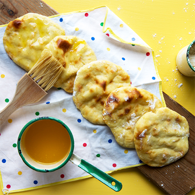Halutessasi sivele vastapaistetut rieskat voisulalla.