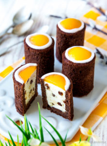 Tammikuussa julkaistun Runebergin piiloleivosten ohjeen jälkeen minulta on toivottu lisää reseptejä shottilasi-silikonivuokaan. Kun vuoan on hankkinut, sitä ei kannata jättää kaappiin pölyttymään, vaan varioida täytteillä erilaisiin sesonkeihin soveltuvia leivoksia. Tässä ohjeessa on tumma kaakaotaikina, johon on helppo yhdistellä erilaisia täytteitä. Pääsiäissesonkia ajatellen laitoin ”piiloon” pashaa muistuttavan sitruunatäytteen. Sen tilalla voisi aivan yksinkertaisesti olla hedelmiä (kesällä tuoreita marjoja) ja päällä kermavaahdosta pursotettu ruusuke. Toivottavasti laitatte Kinuskigalleria-välilehden kautta kuvia omista versioistanne! 🟡 🟡 🟡