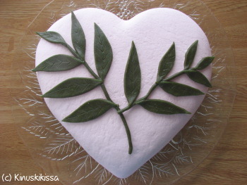 Lehdet tehdään vihreästä sokerimassasta/marsipaanista, joka kaulitaan ohueksi levyksi ja leikataan lehden muotoisiksi suikaleiksi. Veitsenkärjellä voi vetää lehtiin ohuita lehtisuonia.