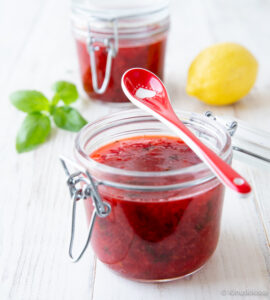 Minihillosokerin ja sitruunan ansiosta tämä mansikkahillo on ihanan raikasta! Se täydentää makeaa kermavaahtoa esimerkiksi lettujen tai pannukakun lisukkeena. Voit käyttää mansikkahilloa myös täytekakun välissä antamaan mansikkaisuutta ilman, että kokonaisuudesta tulee liian makea. Basilika maistuu hillossa mausteenomaisesti. Kokeile muitakin yrttejä, kuten minttua!