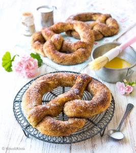 Itse rinkelitaikina on vahvasti sukua pullalle, muskottikukka antaa siihen omaleimaisen aromin. Taikinaohje minulta löytyi valmiina, sillä olin tutkinut asiaa jo kirjoittaessani kirjaa Kinuskikissan helpot suosikit.