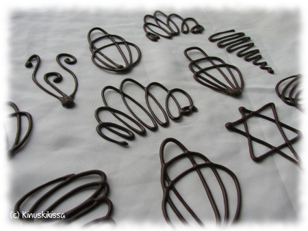- Pursota suklaalla kuvioita leivinpaperin päälle (alla tasainen alusta, kuten leikkuulauta).