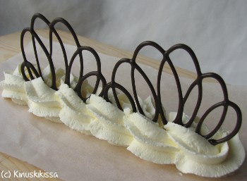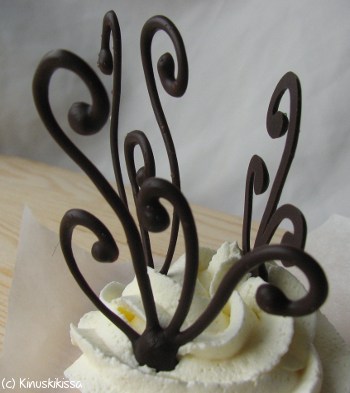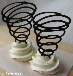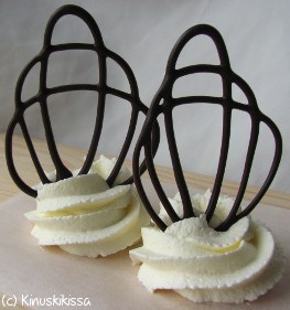 Tumma suklaa: Ruokakauppojen valikoimista Kinuskikissa ei ole löytänyt suklaata, joka kestäisi hyvänä hauraissa koristeissa pehmenemättä. Aiemmin tällainen suklaa löytyi Brunbergilta, mutta he ovat muuttaneet reseptiä.