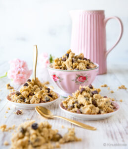 Miten taikinalla herkutellaan? Rakenne on hieman murumaista ja sen vuoksi minusta miellyttävää syödä. Annostele valmiiksi pieniin kupposiin tai laita tarjolle kipossa, josta jokainen voi annostella itse. Nauti jälkiruokana tai kahvin kylkiäisenä. Sopii myös ihanasti leivonnaisten viimeistelyyn, esimerkiksi muffinssien tai kakun päälle. Taikinaa tulee pieni kipollinen, mutta siitä riittää mukavat klöntit noin 6 hengelle.
