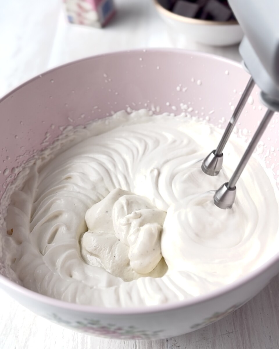 Vatkaa kerma kevyeksi vaahdoksi. Halutessasi voit lisätä mukaan vähän (200 g) rahkaa tai tuorejuustoa.