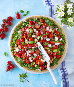 Salaattipiirakka on ihana valinta kevään juhlapöytään, sillä sen raikkaus ja tuoreus täydentävät makeita herkkuja. Salaatin piirakkamuunnos antaa mahdollisuuden hoitaa valmistelut hyvissä ajoin. Täytteen maku vain paranee, kun salaattiainekset saavat marinoitua jääkaapissa. Pohjan voi tehdä pakastimeen valmiiksi ja ottaa juhlapäivän aamuna sulamaan. Vehnätön, Myllyn Parhaan uudesta täysjyväkaurajauhosta valmistettu pohja on maukas ja juustoinen. Kasaa piirakka tarjoilupäivänä.