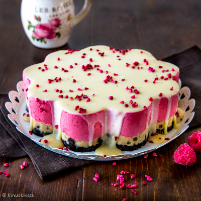 Pikkuleipätaikinan ei tarvitse olla vain rippeitä kulhon pohjalla – tässä kesäkakussa sitä saa syödä ihan luvan kanssa. Alkukesästä julkaisemani cookie dough -karamellikakku sai niin innostuneen vastaanoton, että päätin tehdä siitä kesäisemmän ja raikaamman version. Tuoreista vadelmista saat marjatäytteen, joka tasapainottaa taikinakerroksen ja valkosuklaakuorrutteen makeutta. Kurkkaa ohesta video, jossa koko valmistus on näytetty alusta alkaen.