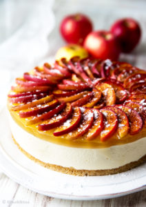 Omenapiirakka on syksyn ehdoton, loputtoman inspiroiva sesonkiherkku. Siitä tämän minun kakkuajatuksenikin lähti. Kinuskikissa taikoo klassikot uuteen muotoon -kirjassa on yksi omenapiirakkakakku, jossa kakkuosuus on tehty omenapiirakan päälle. Tällä kertaa tein toisinpäin: yhdistin juustokakkuun omenapiirakkamaisen kuorrutteen. Paahdoin omenaviipaleet uunissa pehmeiksi ja asettelin ne kiilteen päälle. Yhdessä omenamehusta valmistetun kiilteen kanssa lopputulos on mukavan omenainen. Pelkkien viipaleiden paistaminen sai uunista tulvahtamaan lupaavan omenapiirakan tuoksun, mikä viritti aistit oikealle taajuudelle. 🍏 🍏 🍎 🍎